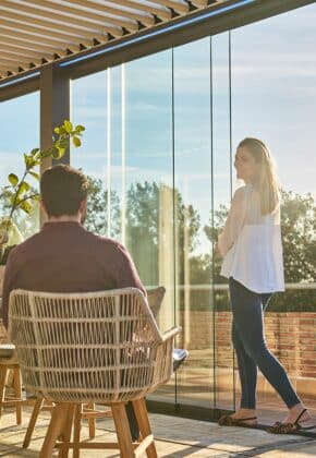 TotalClose garantiza una protección total en el interior de la pérgola Nimbo en cualquier condición climática.