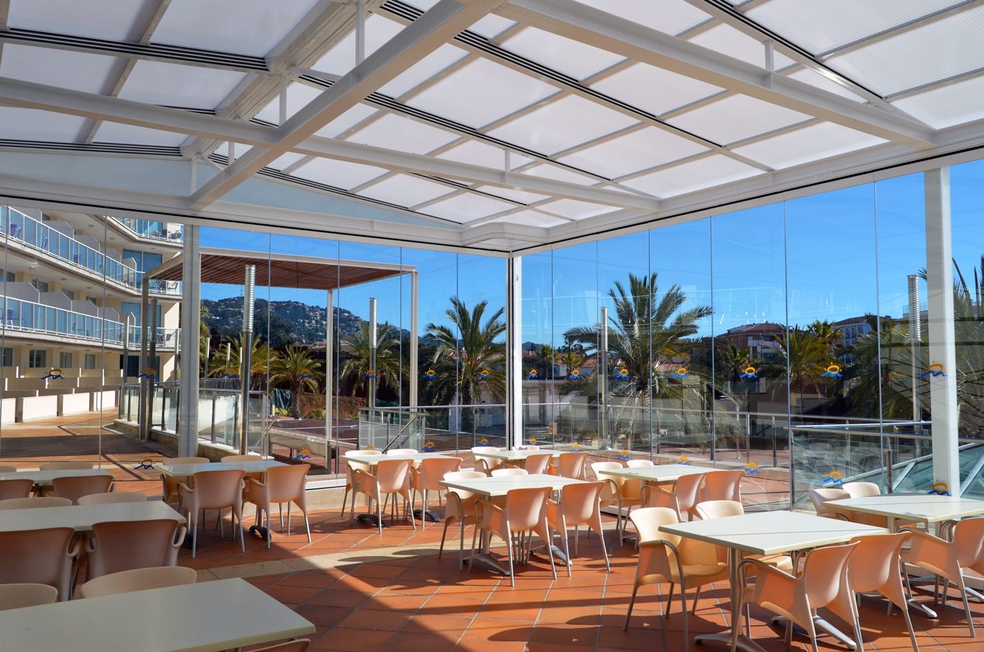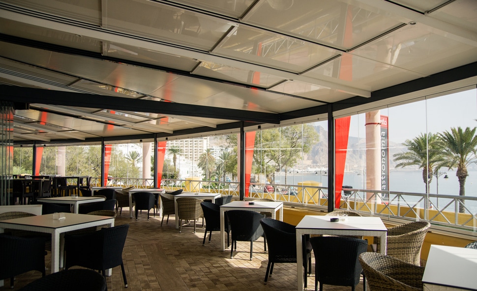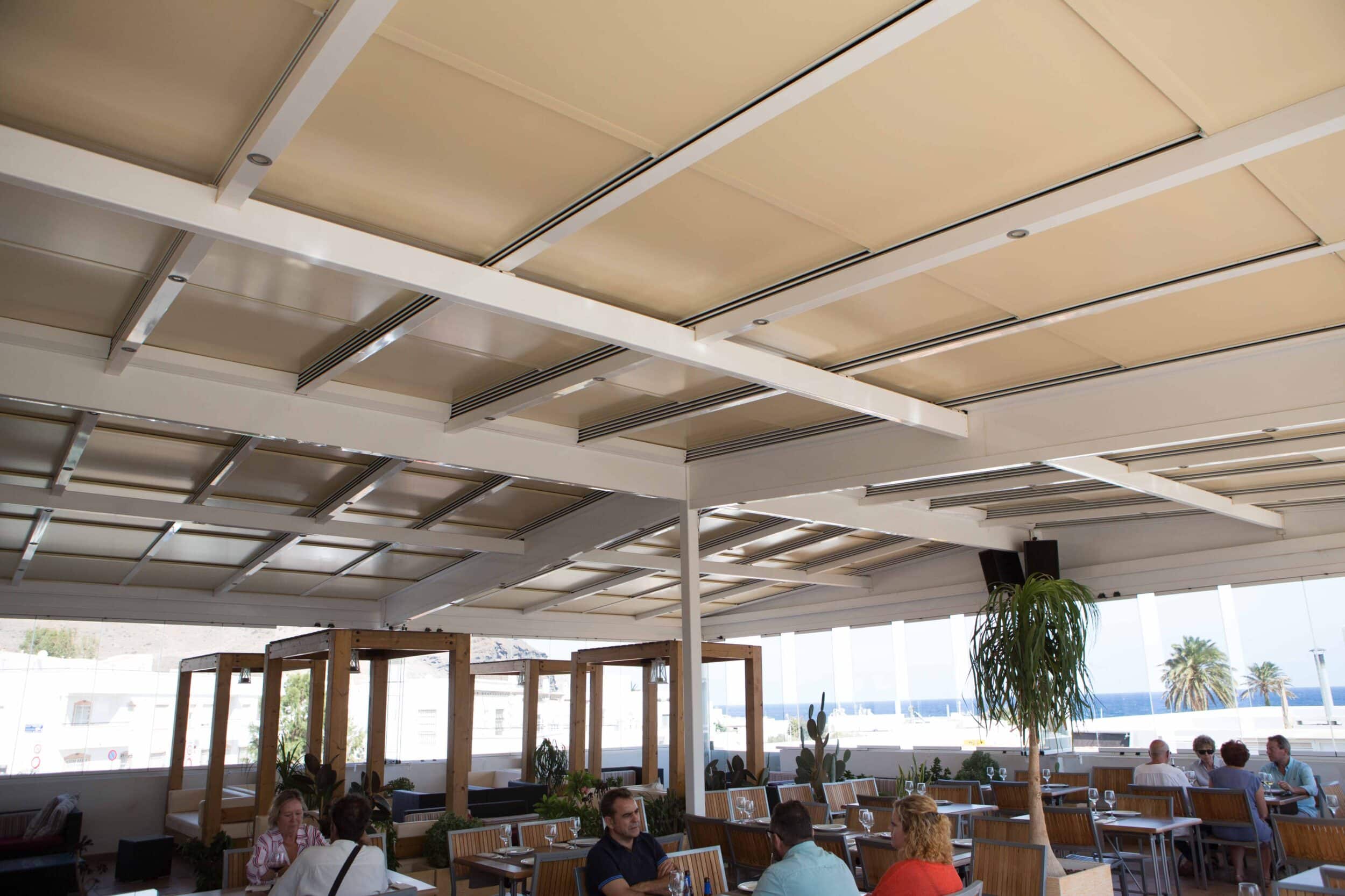 Our innovative mobile roof system will convert your terrace into a space that is completely protected from weather conditions. The area turns back into an outdoor space with the press of a button. Enjoy your terrace or patio all year round.
