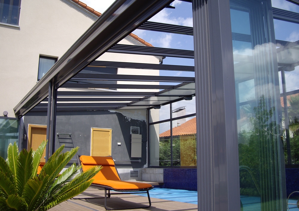 The panels of the Tactic roof are designed so that the rain water runs quickly to the front gutter for evacuation. This avoids puddles, the formation of lime stains or dirt on the glass