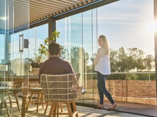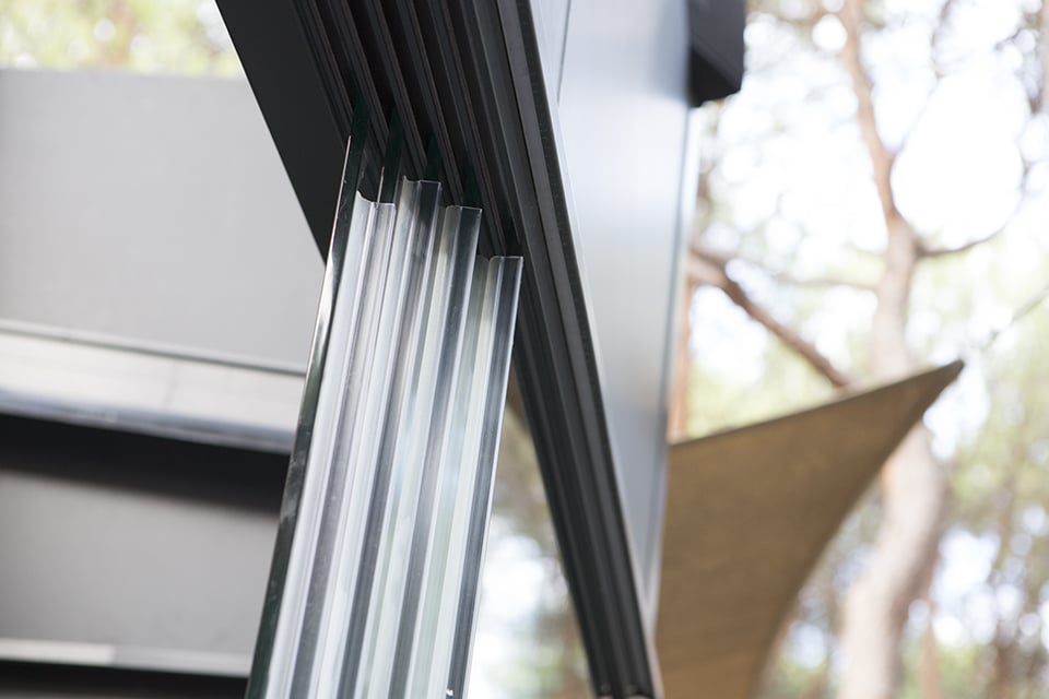 En tirant simplement sur le premier panneau, vous pouvez faire glisser le reste des vantaux en verre pour les ouvrir ou les fermer aisément grâce aux butées avec amortissement intégré.