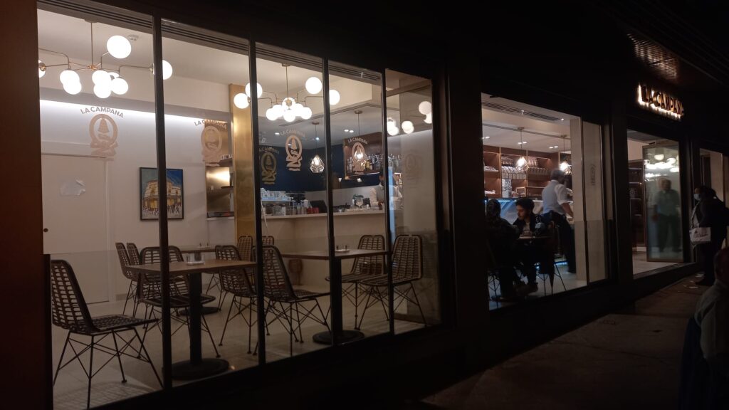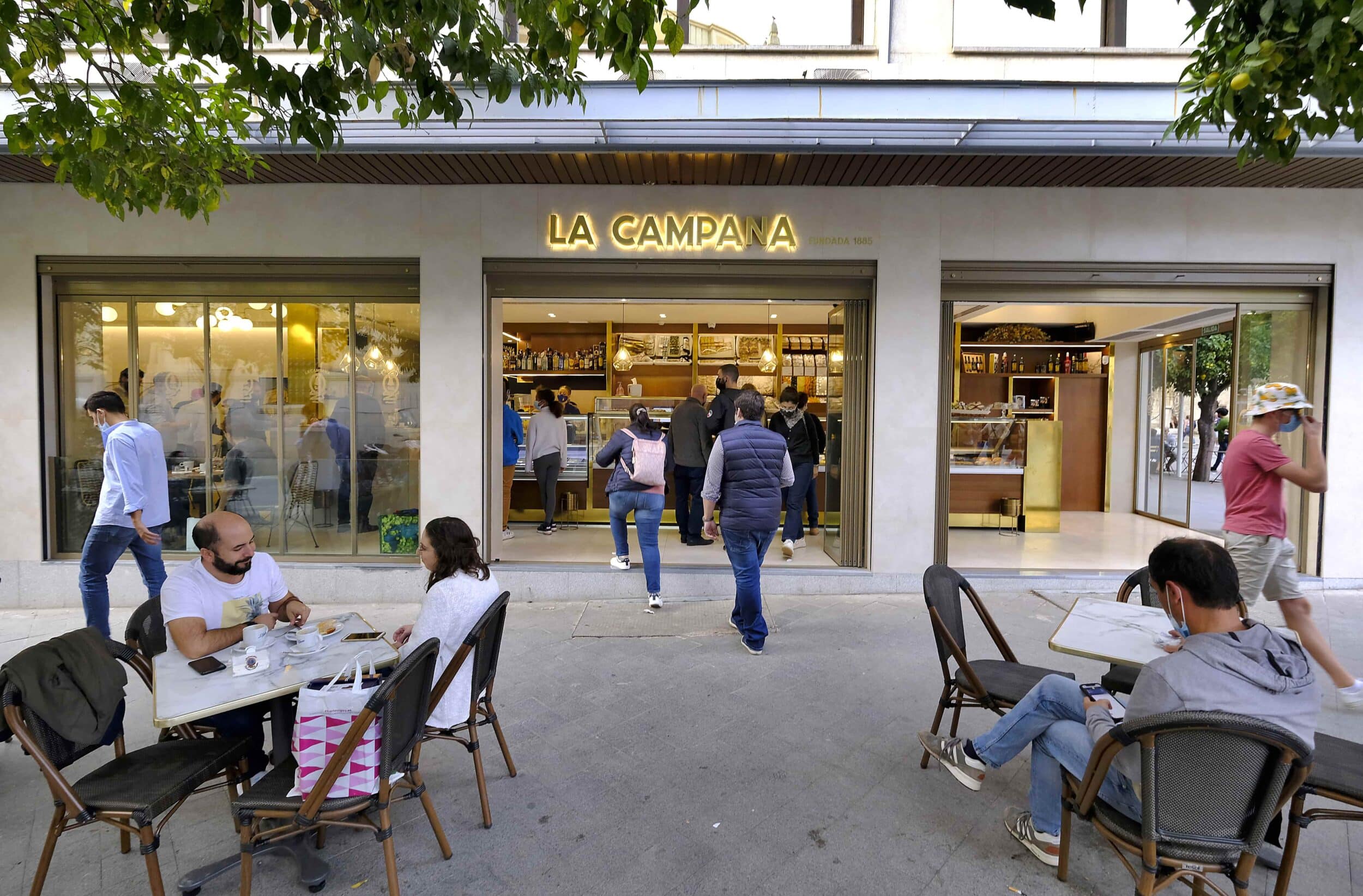 La Confitería con mayor solera y tradición de Sevilla, La Campana, abría un nuevo local en el centro de Sevilla. Justo en un entorno urbanístico protegido por su cercanía con la Catedral de Sevilla, Kauma se enfrentaba al reto de conseguir multiplicar el espacio interior diluyendo barreras visuales y, a la vez, siendo respetuosos con la arquitectura. Había que traer al siglo XXI la esencia de una confitería con cerca de 140 años de historia. El vidrio ya estaba siendo el gran protagonista del local, con grandes mostradores para realzar los dulces más cuidados. Y el cristal debía seguir siendo el leitmotiv a la hora de crear un espacio sin barreras, que introdujese la terraza exterior en el salón interior y generar un espacio sin barreras visuales.