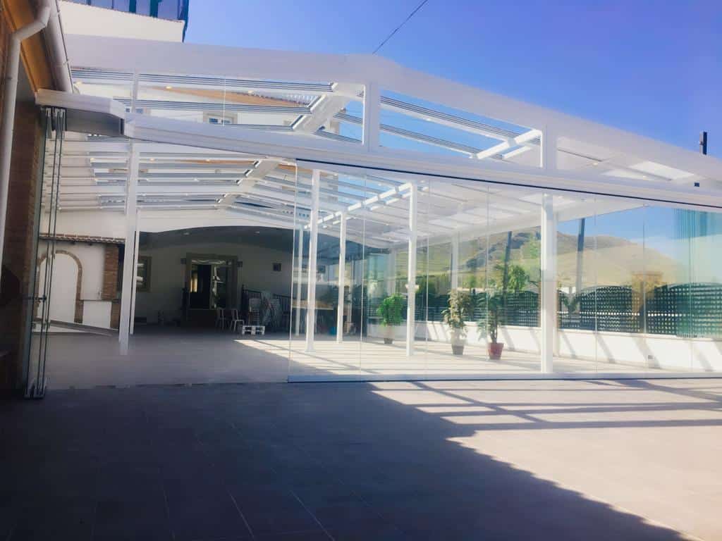 El techo se completó con focos LED de bajo consumo, perfectos para bañar la estancia de luz de manera homogénea. Las cortinas de cristal Pivotal 250 fomentan el confort interior, tanto en invierno como en verano, y ayudan a mantener temperaturas estables en cualquier época el año.