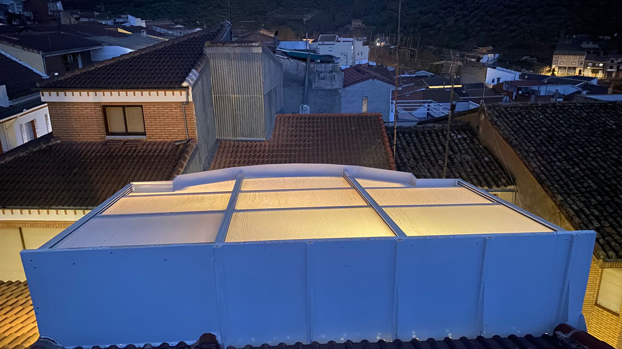 Francisco Javier cuenta con una vivienda de estilo tradicional. En la parte superior, la terraza siempre había estado al descubierto. Cuando quiso darle una segunda vida a la terraza para sombrear la planta superior de casa, se encontró con una problemática: cómo techar el vuelo semicircular de la terraza manteniendo la forma original. Y que este techado, además, fuera móvil. El reto no solo se encontraba en las placas de techo, sino también y en gran medida, en las vigas, diseñadas a medida y milimétricamente pensadas.